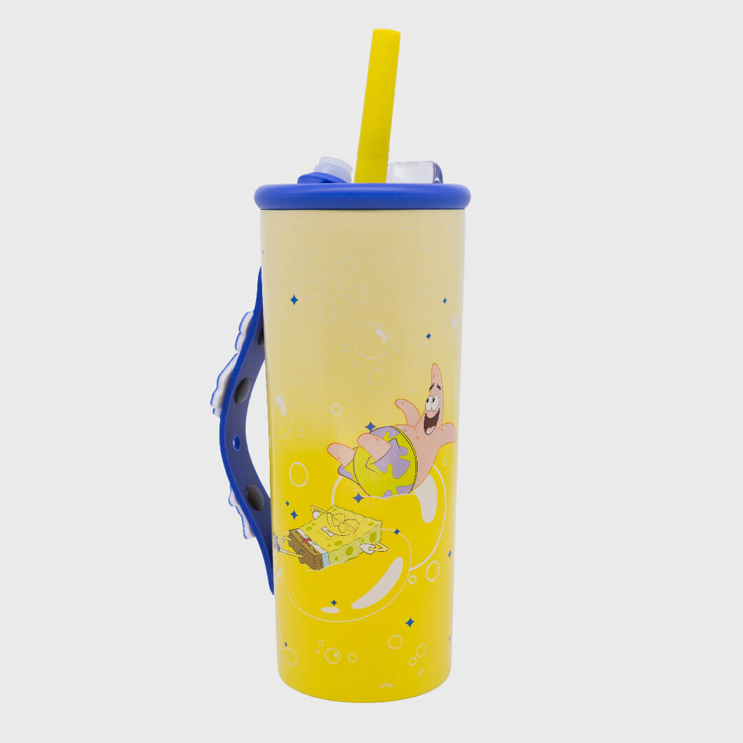 O Copo Charms do Bob Esponja é simplesmente perfeito! Já mantém sua bebida gelada por 12 horas e bebidas quentes por 6 horas. Você pode tomar no canudo ou direto no bocal, além disso tem uma alça super fofa para você ficar mais confortável na hora de segurar seu copo.