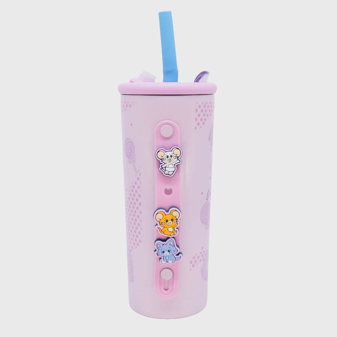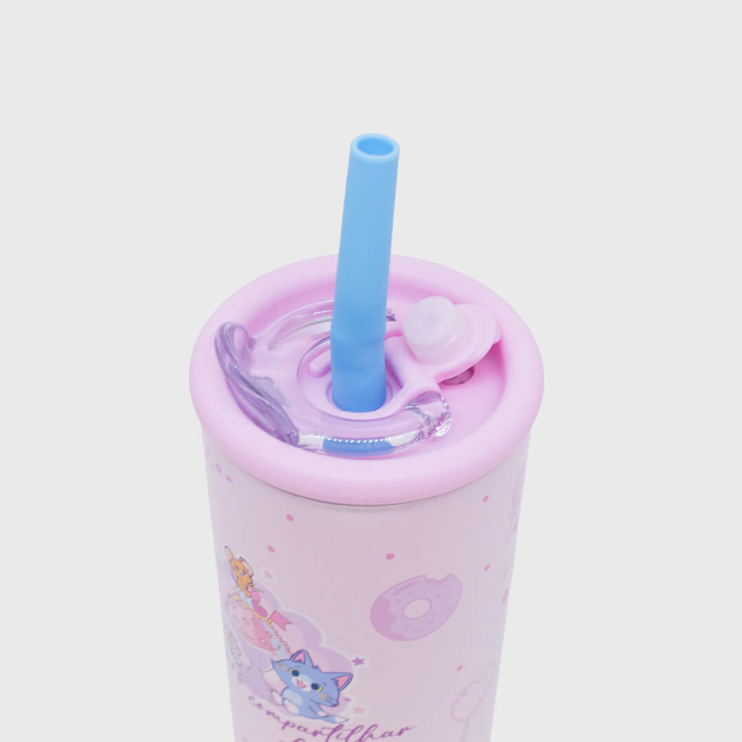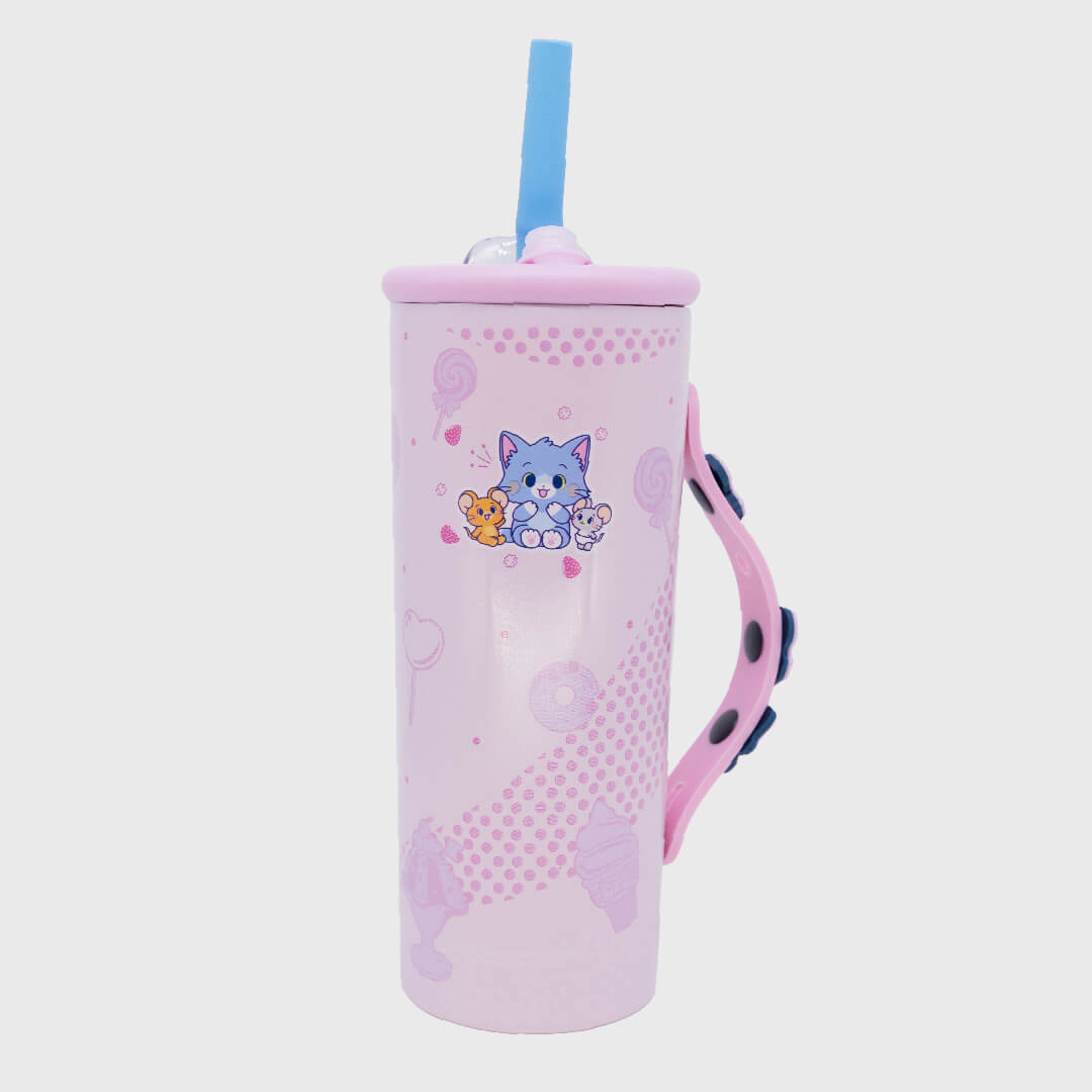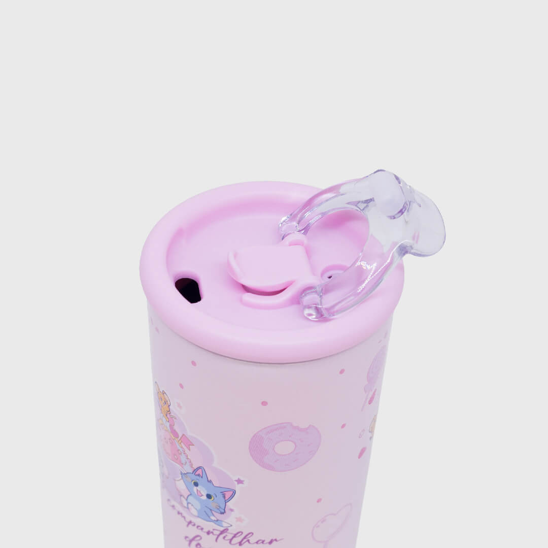 O Copo Charms do Tom e Jerry é simplesmente perfeito! Já mantém sua bebida gelada por 12 horas e bebidas quentes por 6 horas. Você pode tomar no canudo ou direto no bocal, além disso tem uma alça super fofa para você ficar mais confortável na hora de segurar seu copo.