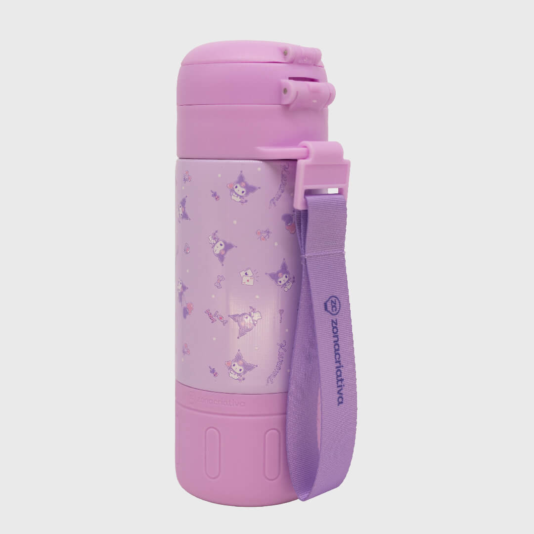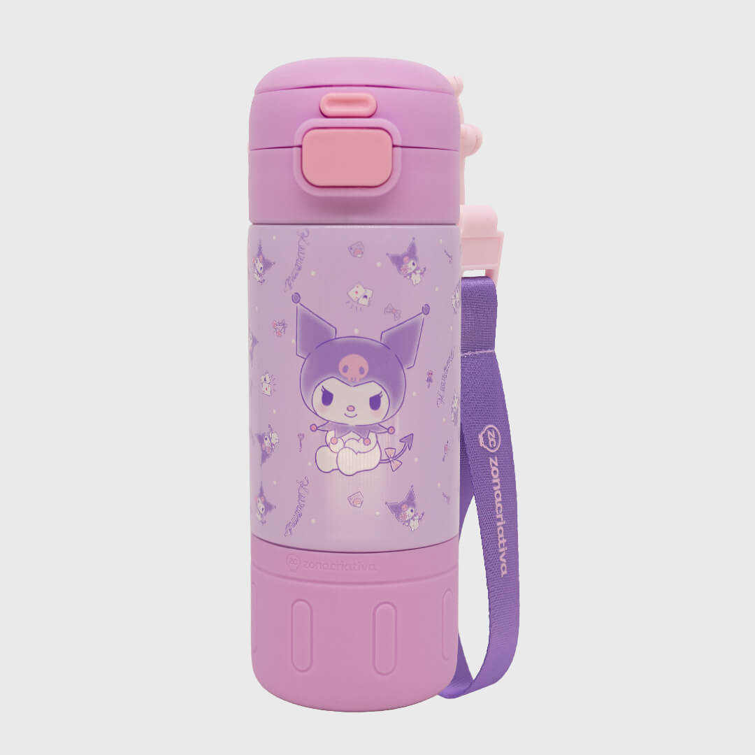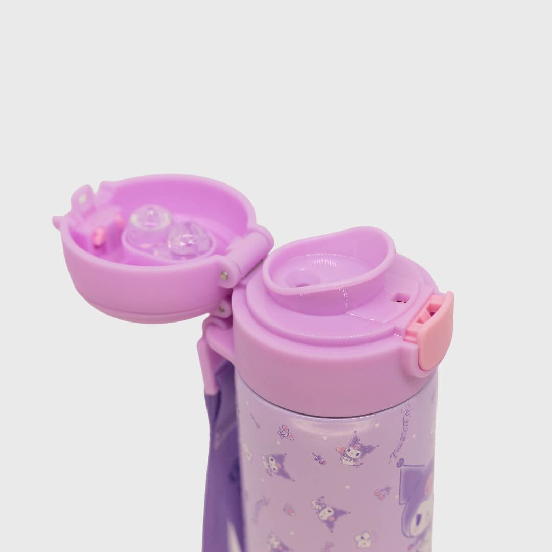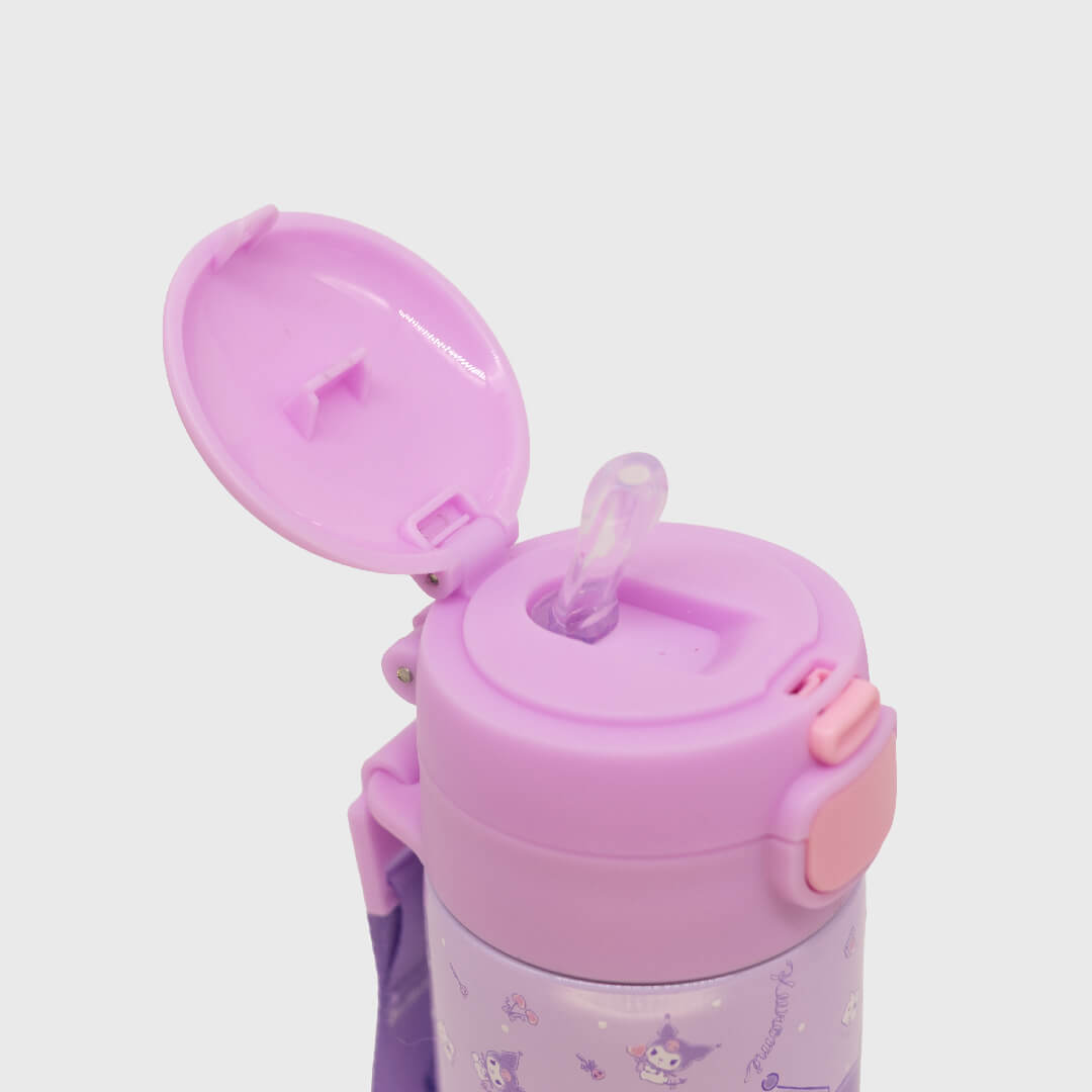A garrafa capsule da Kuromi, é ideal para tomar suas bebidas. Você pode apreciar de 2 formas, direto do bocal ou por canudo.